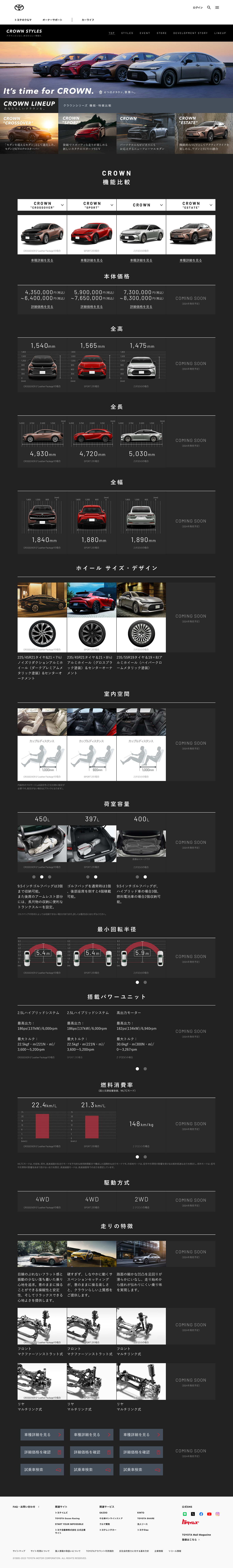 まだどの車種を買うかは明確に決まっていないが、乗りたいクルマの候補として実際にクラウンの購入を検討している層に向けて、定性面・定量面共に情報を備えた、機能・スペック比較コンテンツの制作・提供。クロスオーバーの長所を多角的に表現することで「自分の生活の中にあるクロスオーバー」をイメージしてもらい、魅力を自分ゴト化してもらえるように提示。