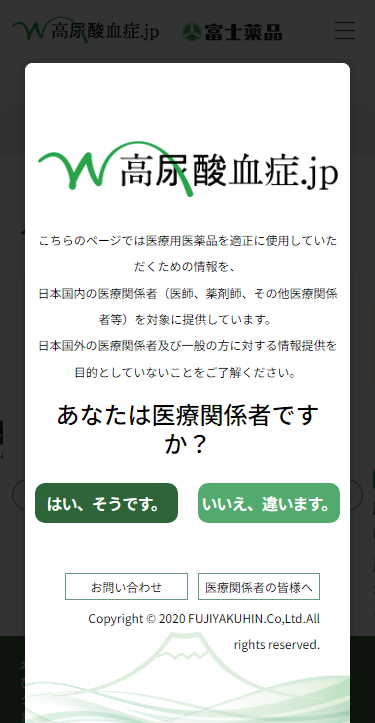 富士薬品 高尿酸血症 認知サイト「高尿酸血症.jp」