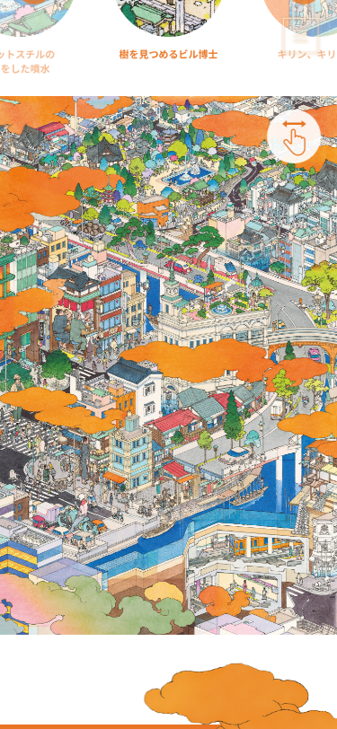 そんなイラストを利用して虫眼鏡ツールを実装しユーザが楽しめるコンテンツを実装しました。