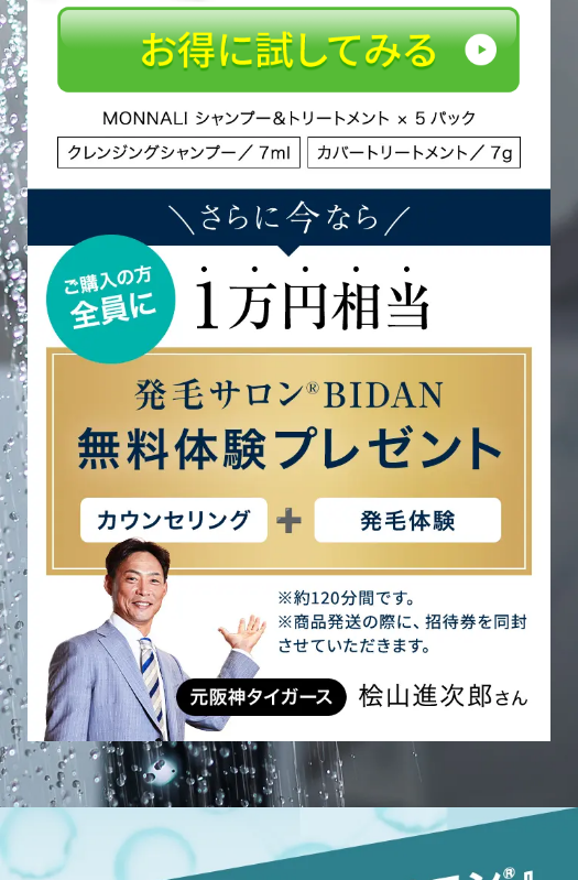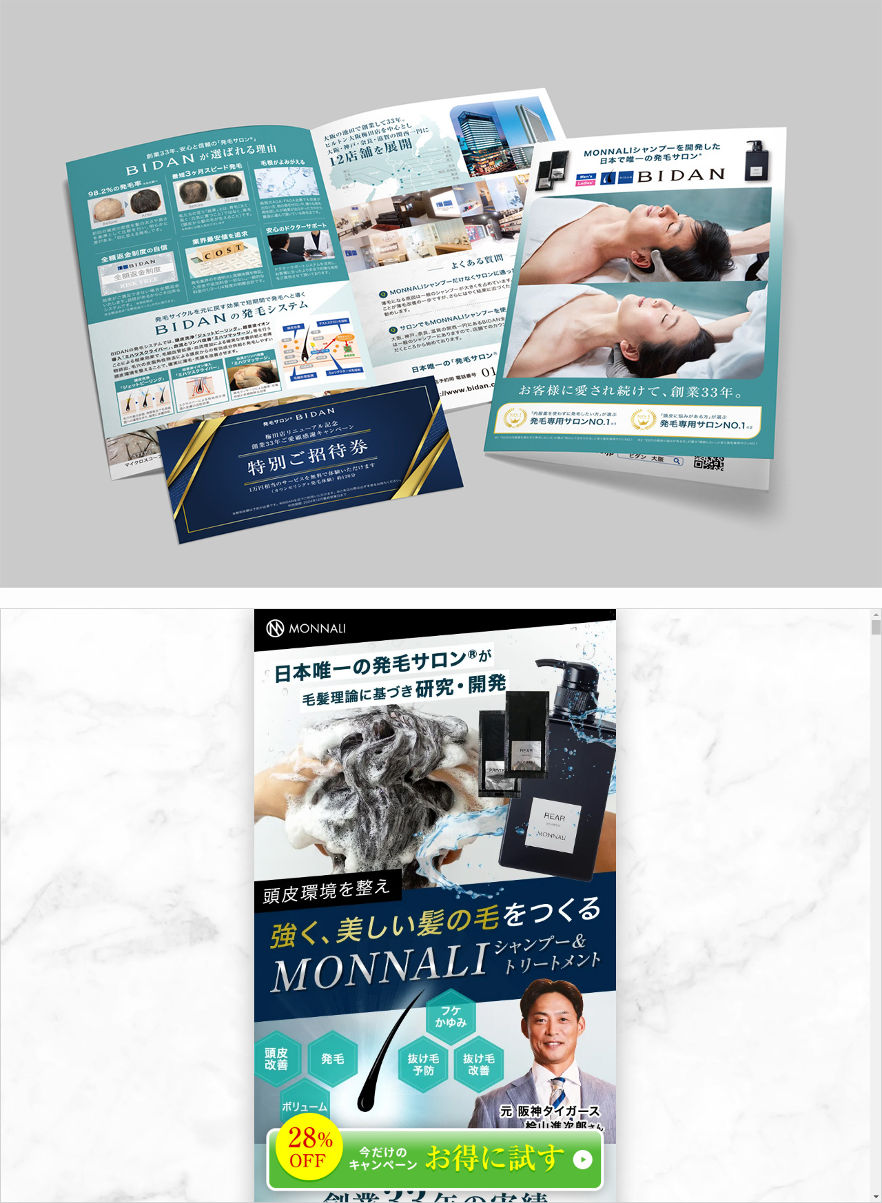 発毛サロン「BIDAN」開発「MONNALIシャンプー」LP+リーフレット