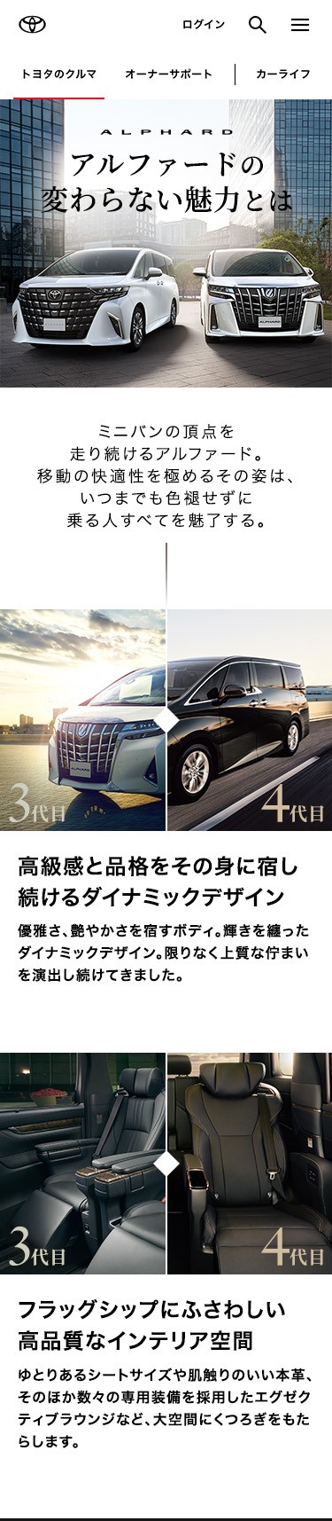 ・トヨタ認定中古車ページ、及び周辺車種群LP(高品位車種群等)への遷移リンク→事業内の買い回り促進